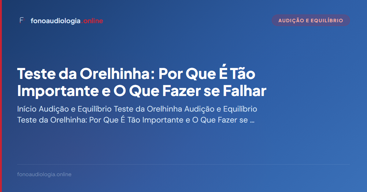 O teste da orelhinha é simples, indolor e gratuito — e pode mudar completamente a trajetória de desenvolvimento de uma criança com perda auditiva. Uma falha no teste não é motivo de desespero, mas é motivo de ação: buscar o reteste e, se necessário, a avaliação diagnóstica o mais rápido possível.